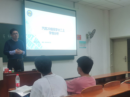 会议接近尾声, 班主任汪舟老师就大二上学情进行分析,一步一步剖析同学们在学习生活中可能存在的问题,并针对性地提出解决方法,对于班级部分成绩相对不理想的同学,汪舟老师更是提出“对一针对性帮扶”的举措。最后,汪舟老师鼓励大家积极投身学习,为将来的事业打好基础,一起共同进步,不断成长。
