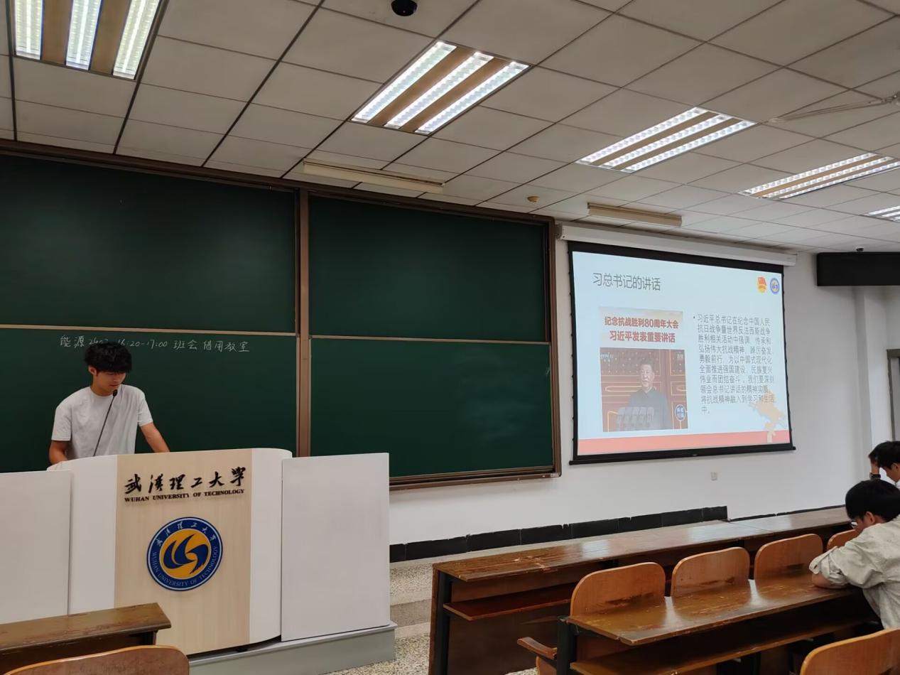 2025年9月21日下午4时50分,为深切缅怀革命先烈,弘扬伟大抗战精神,能源2402班于博学主楼508教室开展了“弘扬伟大精神,做光荣自豪中国人”团日活动。本次活动由团支书赵增辉主持,支部23名团员参加。