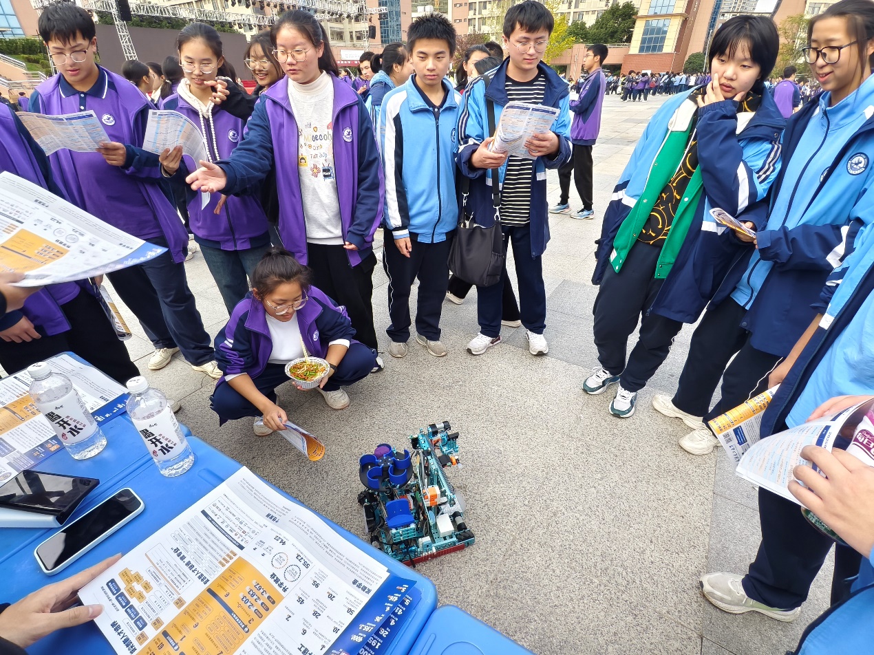 11月1日,汽车工程学院走进襄阳三中参与该校特色科技文化节,学院招宣联络员李舒妮老师、本科2022级优秀学生林秋岳、李浩宇参加。此次参展,学院带来了智能车工作室自主研发的智能小车,以生动有趣的科技互动形式,为襄阳三中学子搭建起探索汽车工程领域的桥梁。