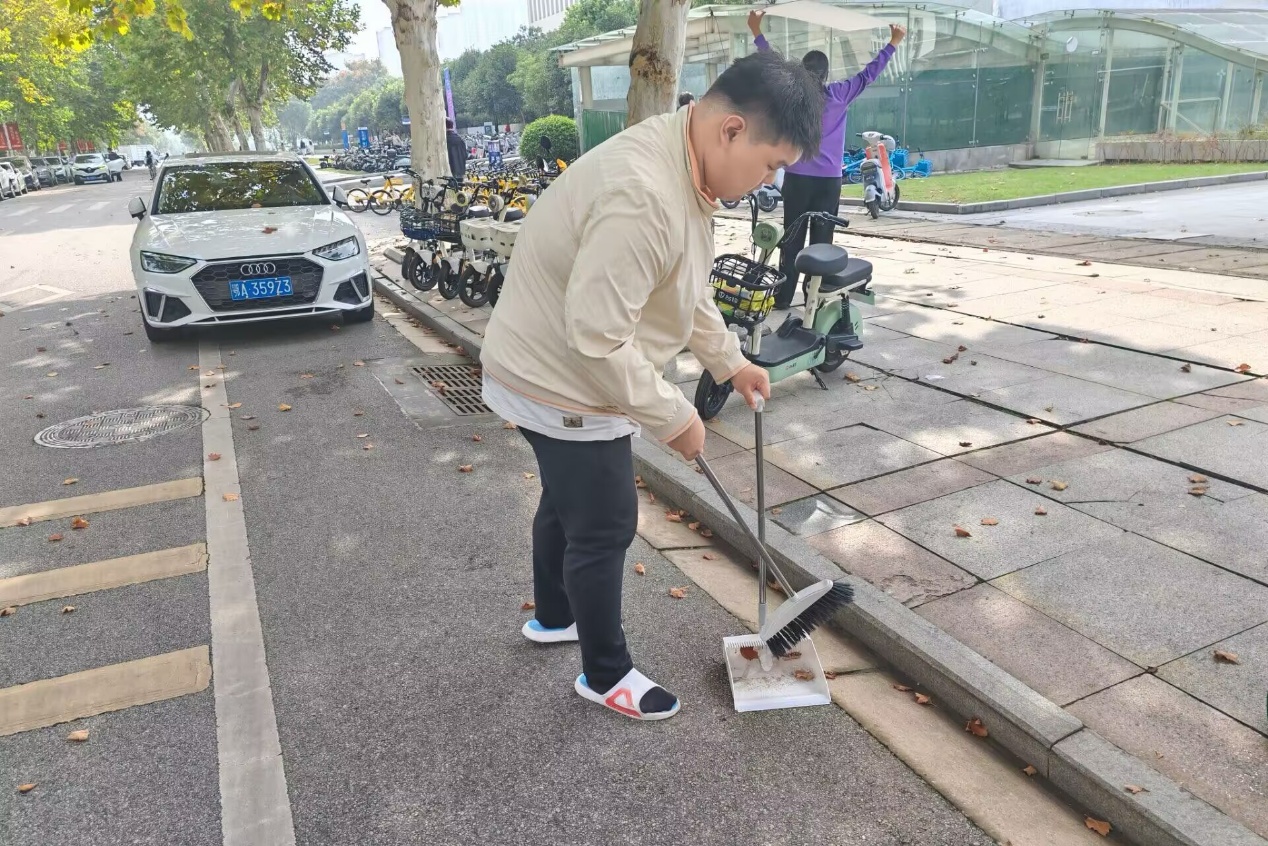 活动当天,志愿者们提前集合,手持扫帚、垃圾袋等工具,以饱满的热情投入清扫工作。大家分工明确、相互配合,重点对博广东路路面的落叶、纸屑、塑料杂物等进行全面清理,不放过任何卫生死角。