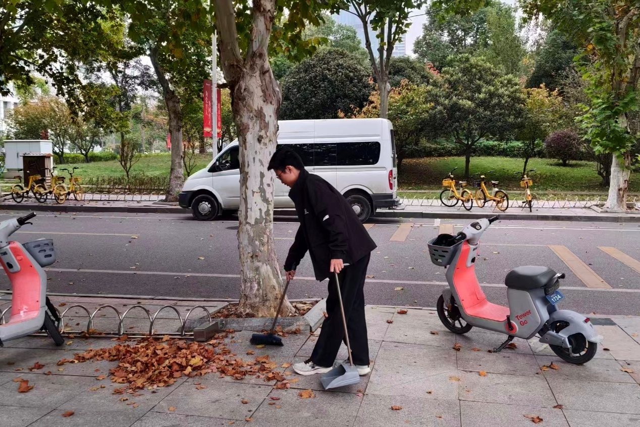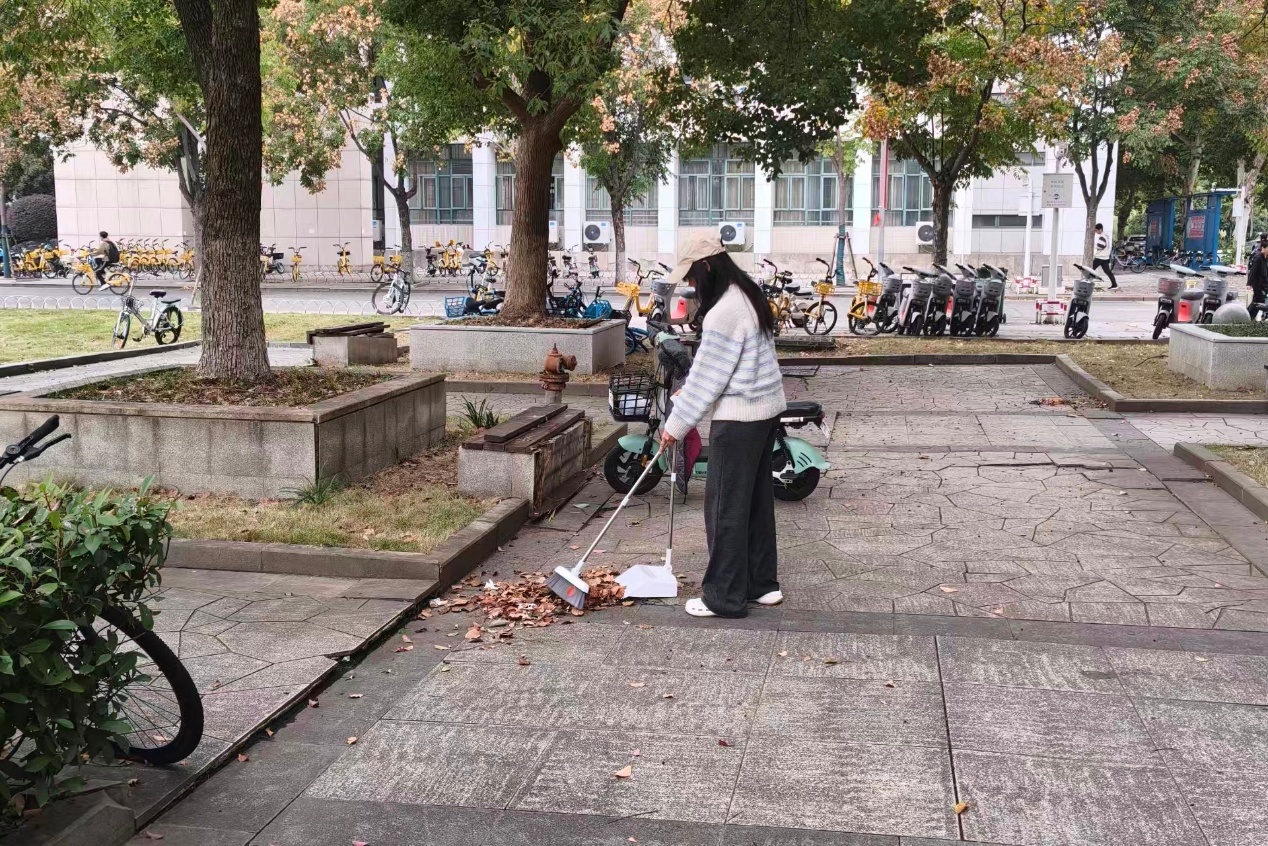 活动伊始,志愿者们携带扫帚、簸箕、垃圾袋等清扫工具,提前集结在博学广场东侧,以积极认真的态度投入到清洁工作当中。大家分工合作,相互配合,对博学广场地面以及周边人行道进行了落叶、碎纸等杂物的清理,争取覆盖所有卫生死角。
