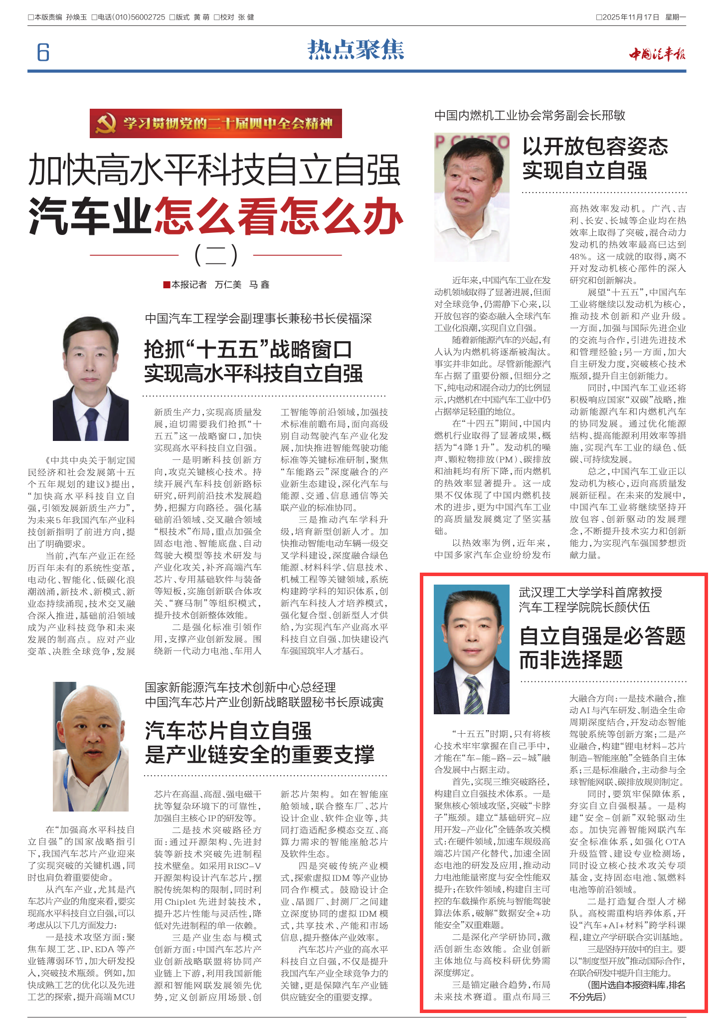 为深入学习贯彻习近平总书记在党的二十届四中全会上的重要讲话和全会精神,紧扣 “十五五” 时期产业发展目标、助力中国汽车产业提升全球核心竞争力,近日《中国汽车报》围绕 “加快高水平科技自立自强 汽车业怎么看怎么办” 主题,采访了学院院长颜伏伍,相关详细报道如下。