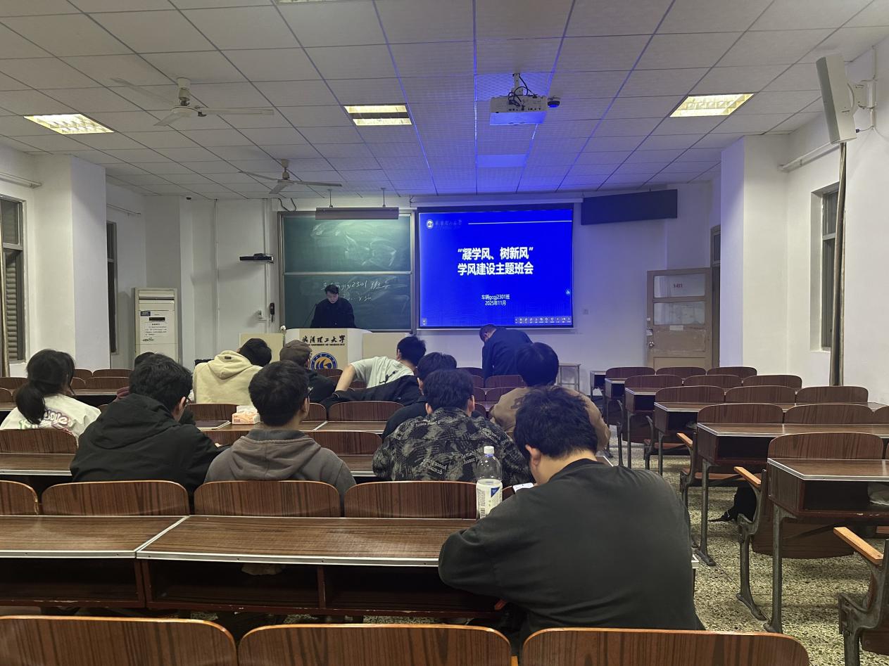 为加强班级学风建设,营造良好的学习氛围,11月14日19时,汽车工程学院车辆gcgj2301班于致远楼411教室顺利举行“凝学风,树新风”学风建设主题班会。会议由班长耿翌祥主持,班主任汪怡平老师主讲,车辆gcgj2301班全体同学与会。