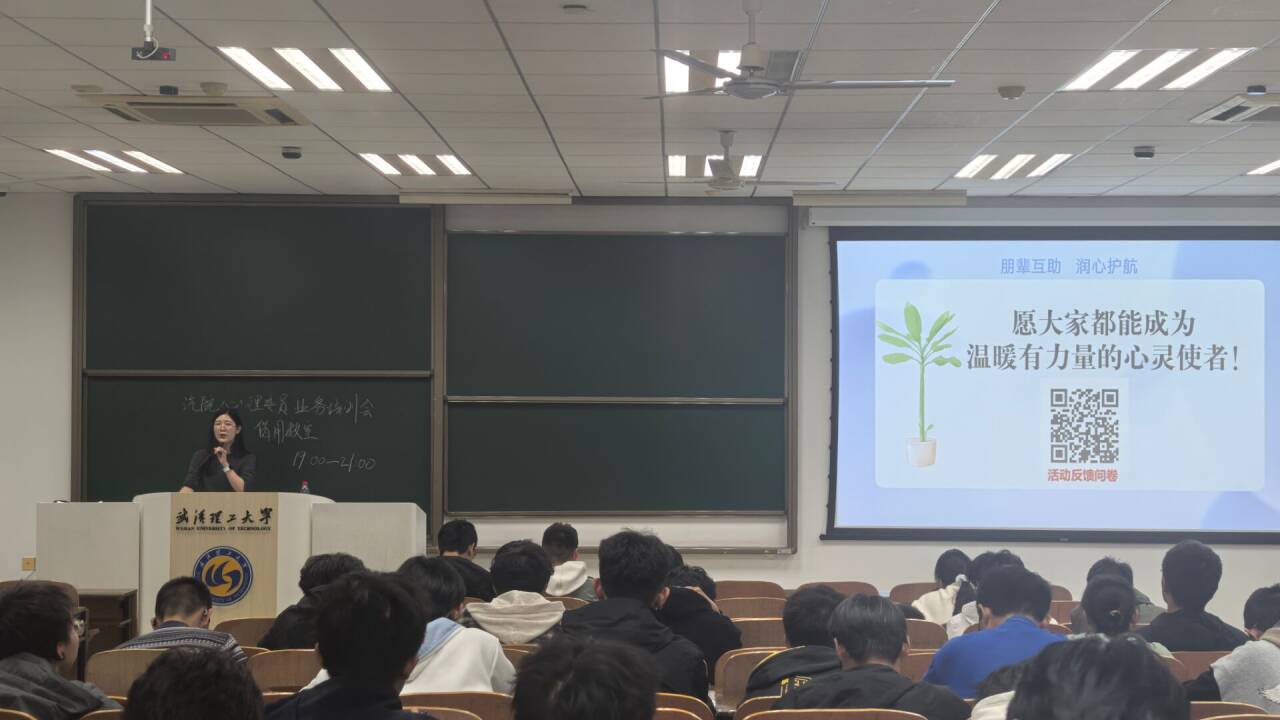 会议伊始,心协会长白川谷详细介绍了本次培训的核心议程与预期目标,为会议有序开展奠定基础。随后,武汉理工大学心理健康教育中心罗金晶老师以心理委员业务培训为核心展开分享。罗老师创新采用趣味互动游戏与即时问答相结合的形式,在轻松氛围中拉近同学间距离,同时系统传递心理健康知识与沟通技巧,以言传身教助力大家提升专业服务能力。