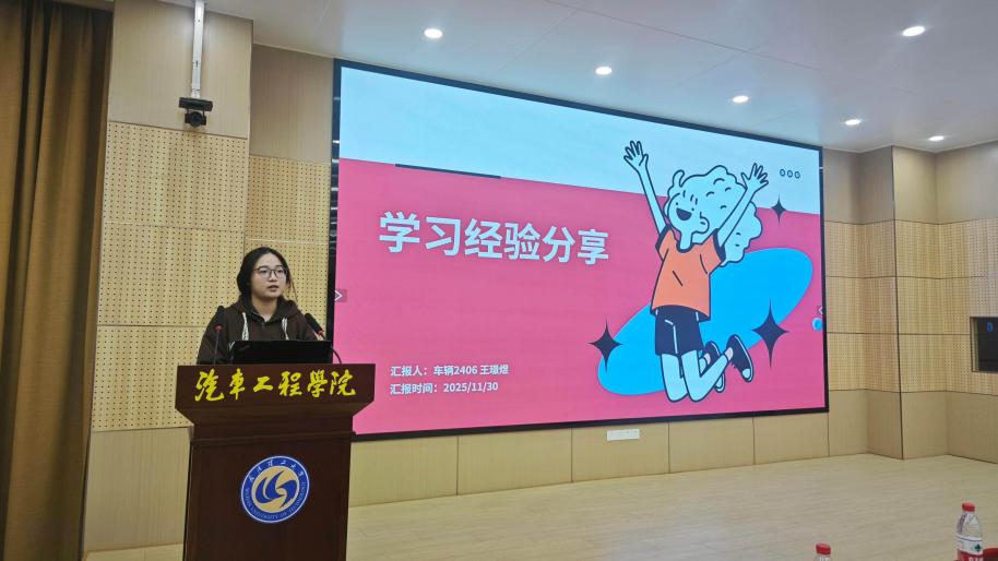 在经验分享环节,学院优秀学子代表车辆2302班董瑞鹏和车辆2406班王璟煜依次上台,结合自身经历,分享了宝贵的学习与备考经验,并就相关课程提供了实用的学习方法,为在场同学提供了有益的借鉴。