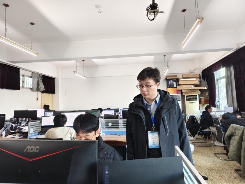 在实验室走访检查中,老师与学生们进行了亲切交谈,仔细询问同学们近期的科研进展与遇到的困难,通过讲述实际案例帮助学生缓解科研压力,并叮嘱学生离开实验室前要确保实验设备停用、电源关闭,做好实验数据备份与实验场地清理,落实实验区域环境卫生及安全防护措施。