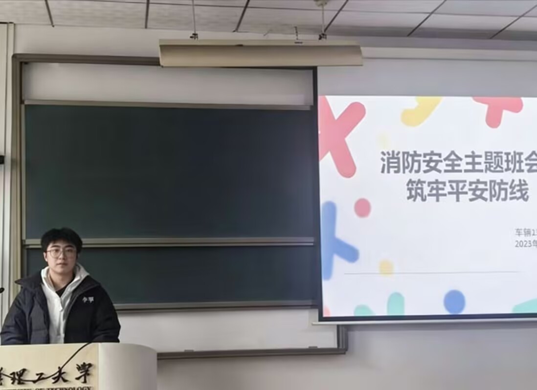 为帮助同学们树立正确的消防安全观念,增强消防安全防范意识,营造安全有序的班级及校园环境,12月15日下午四点半,车辆2303班在致远楼302教室成功开展“筑牢安全防线”消防主题班会。本次班会由陈炳宇主持,车辆2303班全体同学参与。