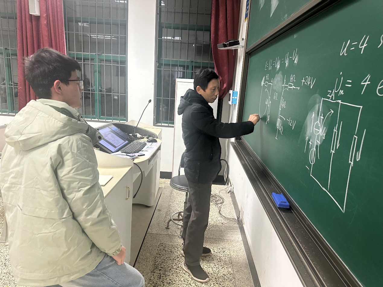 答疑过程中,林伟老师不仅给予同学们专业细致的学术指导,还十分关注大家的学习心态,充分理解同学们面对课程难点与学业考核产生的焦虑情绪。他谈到,《电工与电子技术》涉及的知识点繁杂,学习过程难免遇到阻碍,但只要找准方法、循序渐进,注重知识点的归纳总结,就能稳步提升学习成效。同时,他着重强调理论联系实践的重要性,鼓励同学们主动参与实验实训,借助实操操作巩固理论知识,做到学用结合、知行合一,让知识掌握更扎实、更透彻。