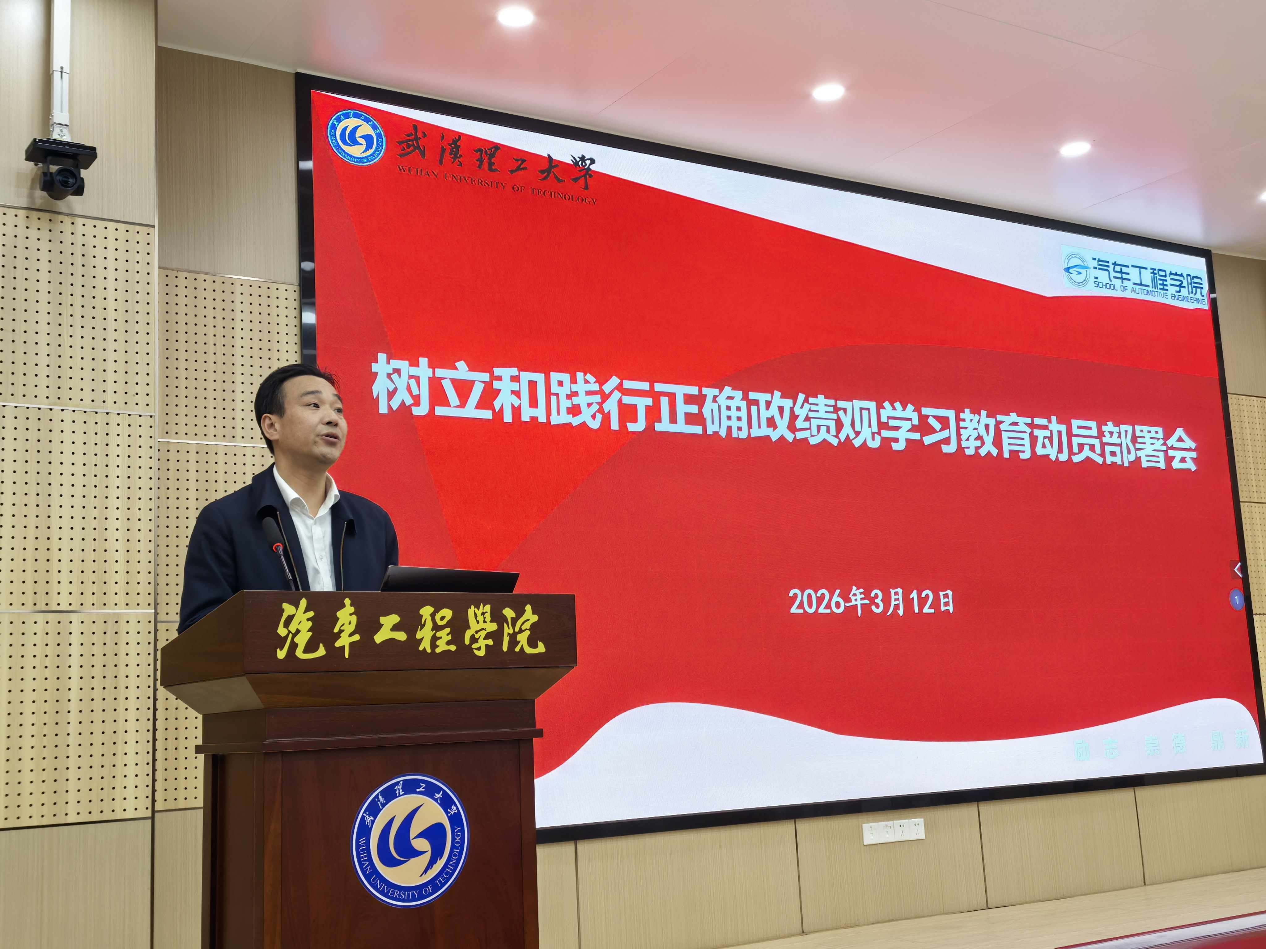 3月12日,汽车工程学院召开树立和践行正确政绩观学习教育动员部署会,学院党委书记刘耀胜主持会议并作动员报告,学院领导班子成员、全体教职工党员、学生党总支委员、群众代表参会。