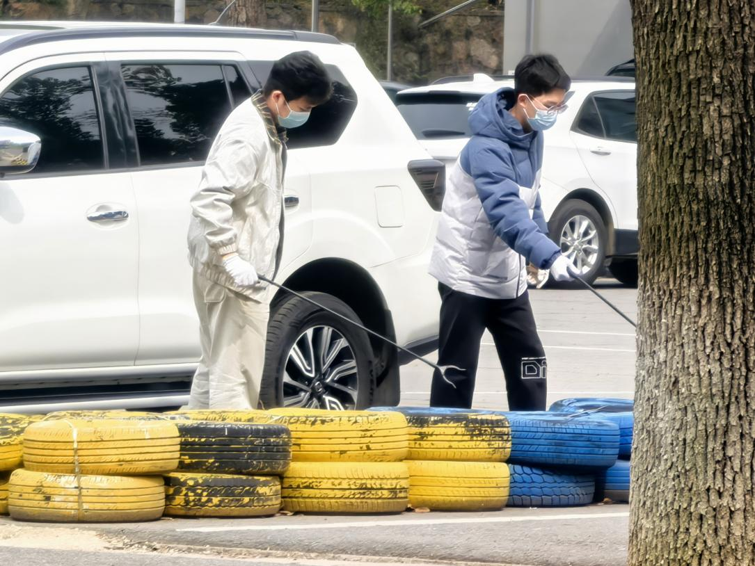 轮胎广场上,胡浩同学带队全面清扫垃圾,重新规整轮胎展品,擦亮学院标志性区域,让广场颜值提档升级;汽车文化展柜旁,唐浩轩、陈哲两位同学牵头开展全方位清洁,房顶除尘、地面清杂、玻璃擦拭、展品养护,每一处细节都精益求精,同时安排专人统一收运垃圾,实现环境整治无死角、全覆盖;办公室区域里,杜思程同学带领组员细致耕耘,对废旧纸张、各类杂物分类整理、集中清运,为办公空间“减负增效”,让办公环境告别杂乱,尽显清爽高效。