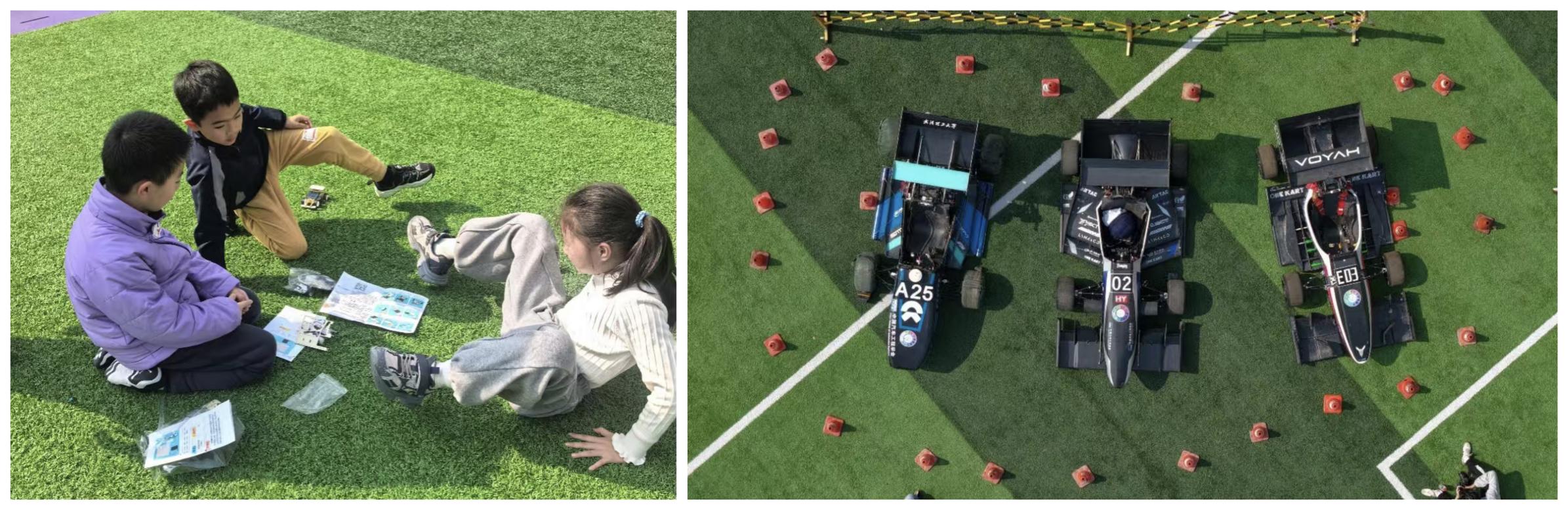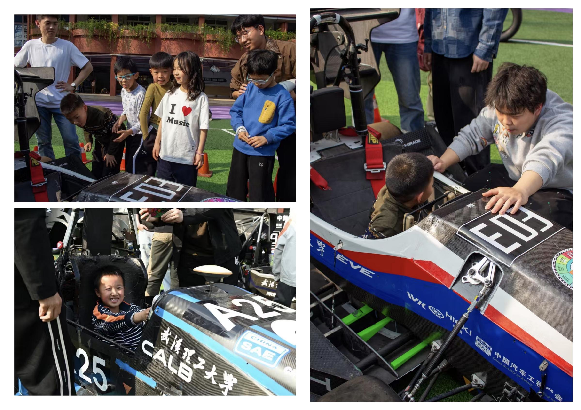 随后,聂老师向小朋友们介绍了武汉理工大学三支方程式车队,酷炫的赛车瞬间吸引了孩子们的好奇心。孩子们听得津津有味,眼中满是兴奋与向往。