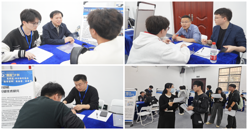 为深入贯彻学院导师制,提高本科生科技创新能力,促进本科生关注国家战略、推动创新实践,持续推动学院学风建设向好创优,4月12日下午,汽车工程学院第三届“鼎新计划”之“本科生—项目组”双选会在桂园社区就业大楼五菱厅举行。作为学院连续第三年打造的“科技创新启航平台”,活动面向2024级、2025级本科生开放多层次科研实践岗位,汽车工程学院党委副书记蔡春,各团队指导老师齐聚现场。据统计,现场吸引约400名本科生参加,累计投递简历逾800份。